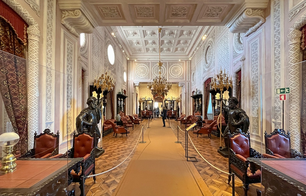 O toque islâmico inspirado em azulejos azuis-centáurea com um toque de amarelo pervinca o torna digno de ser contemplado. Esse palácio é o amálgama perfeito dos estilos neogótico, neomanuelino, neomourisco e islâmico. Esse palácio dos sonhos lembra o extravagante castelo de Ludwig da Baviera.